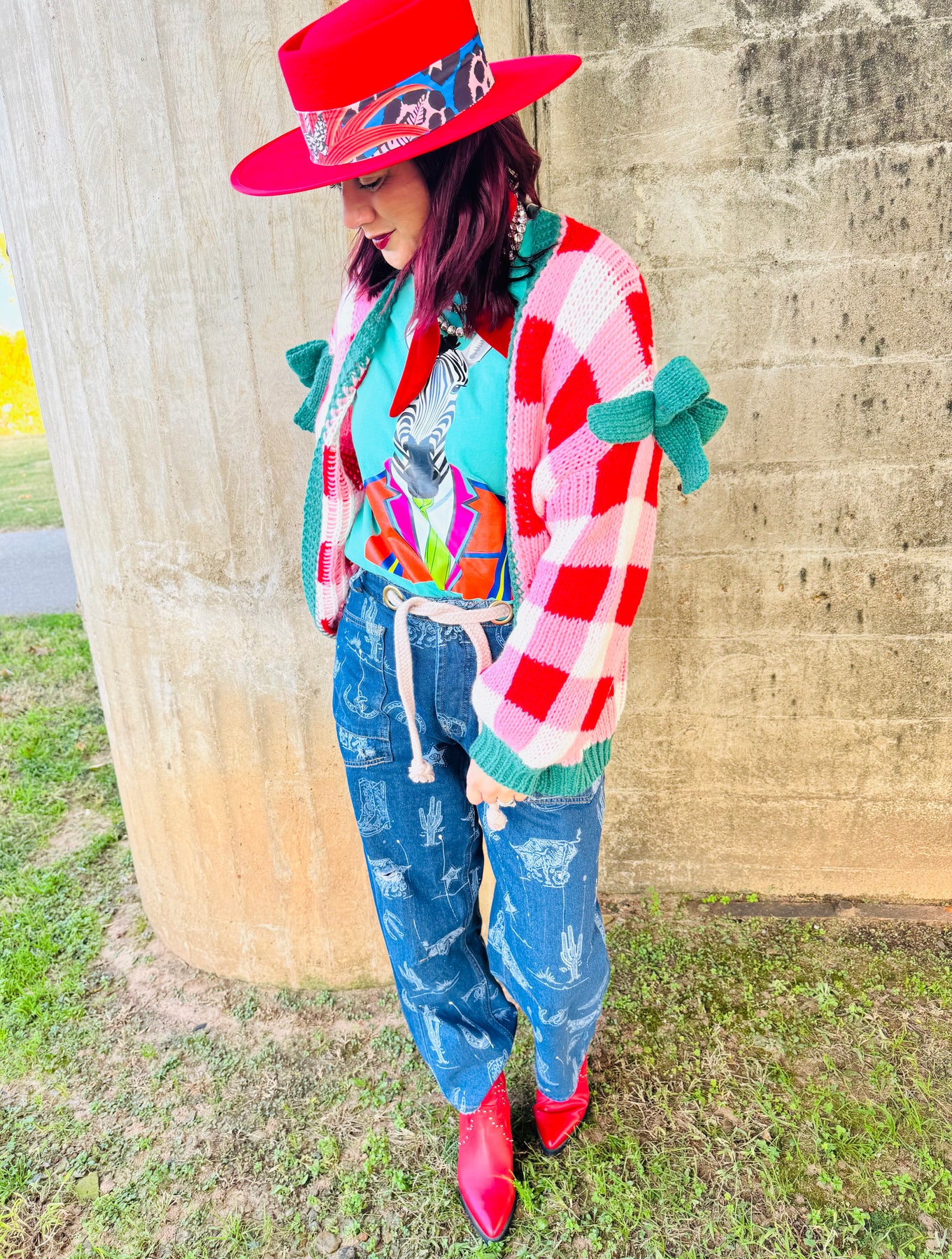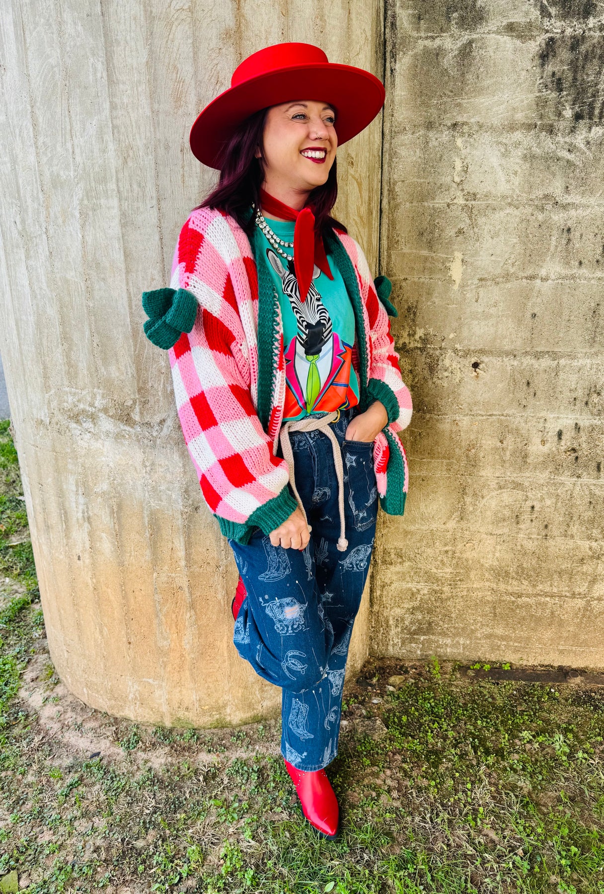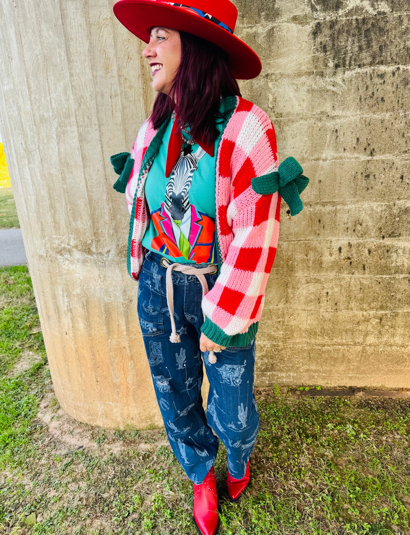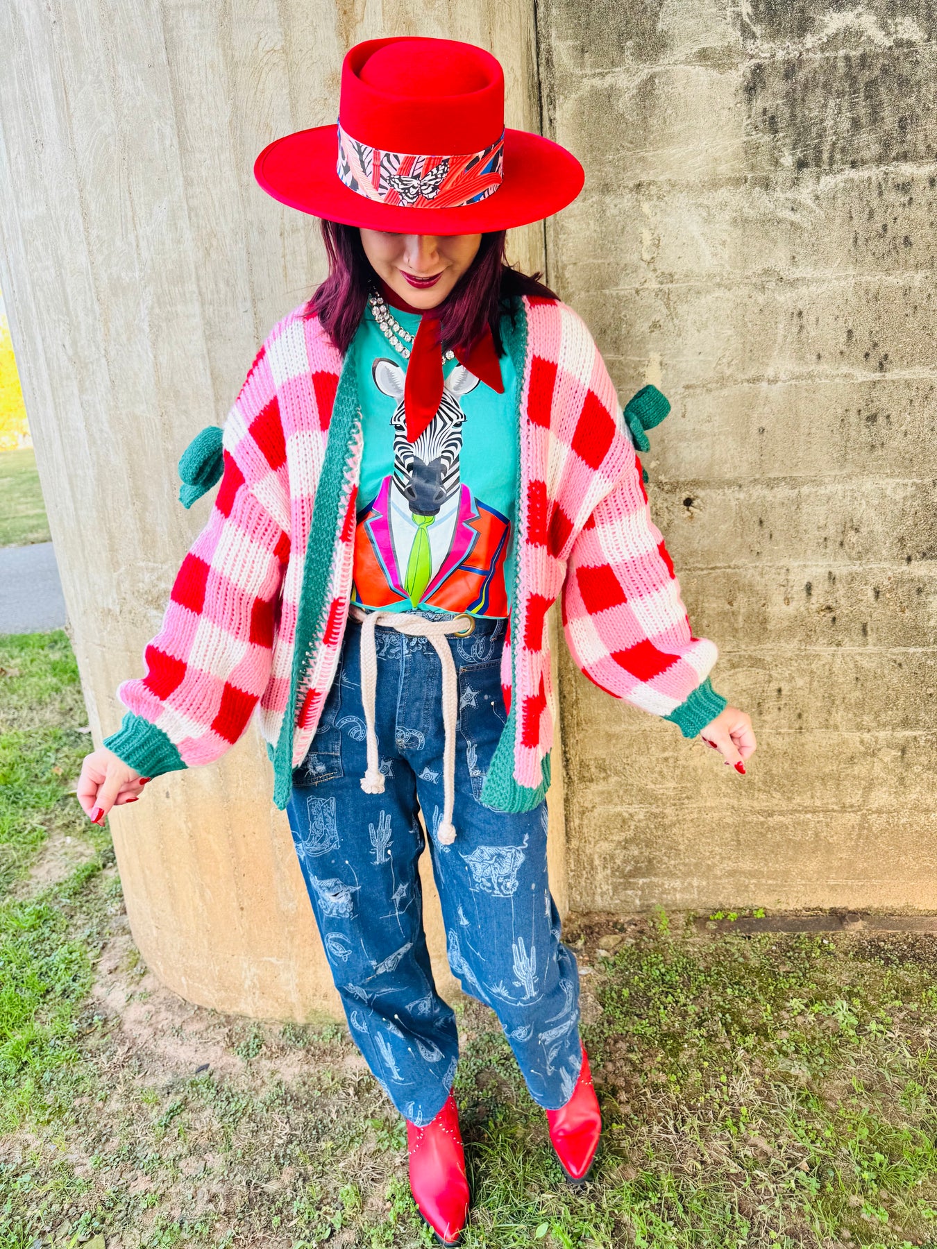 Red Checked Cardigan