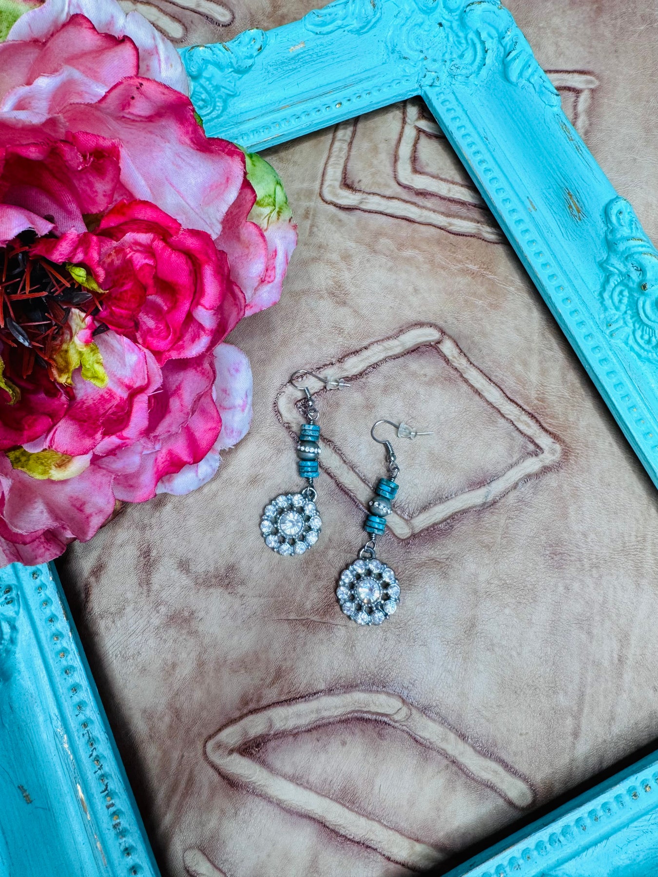 Crystal Flower with Turquoise Earrings
