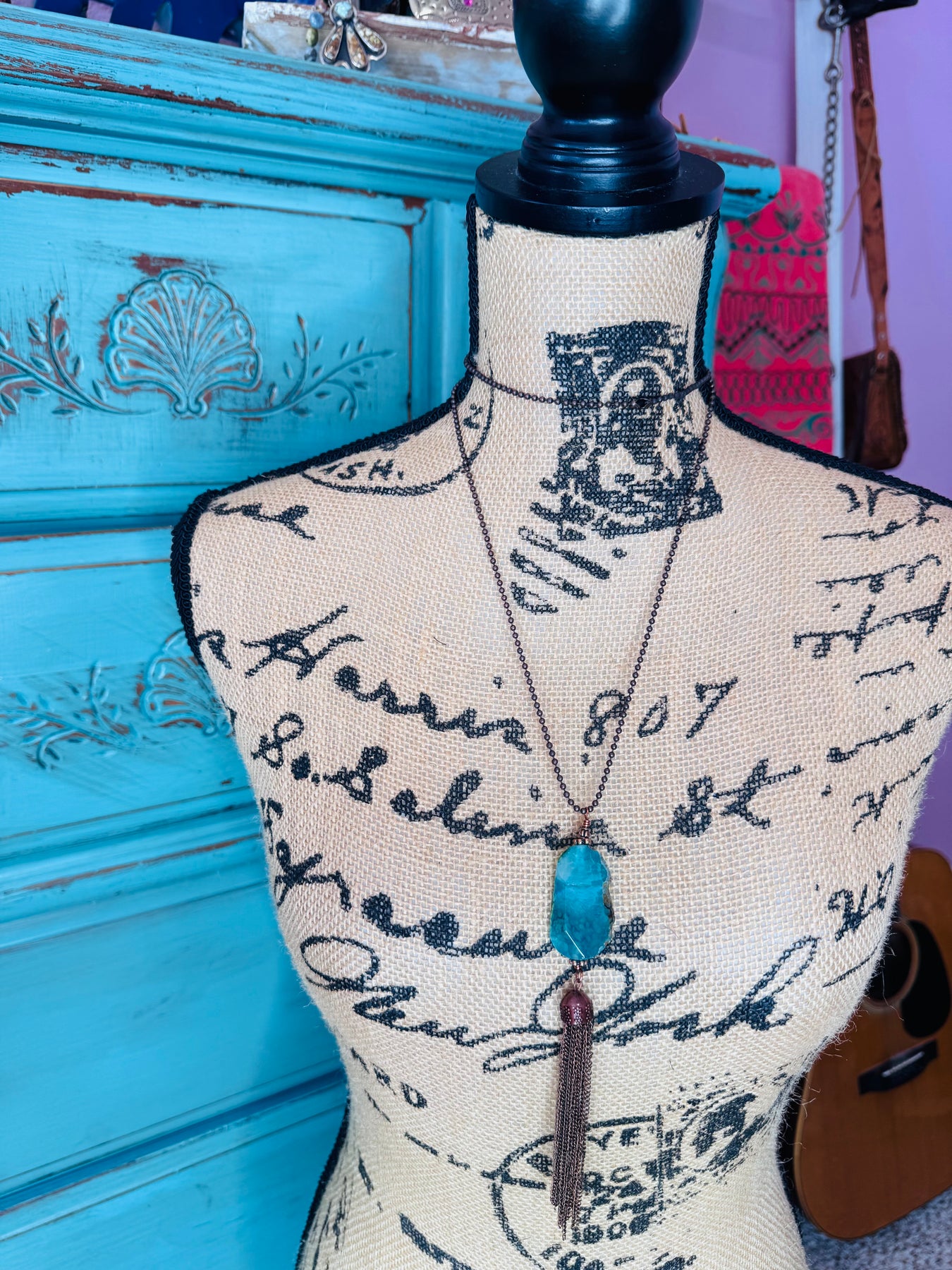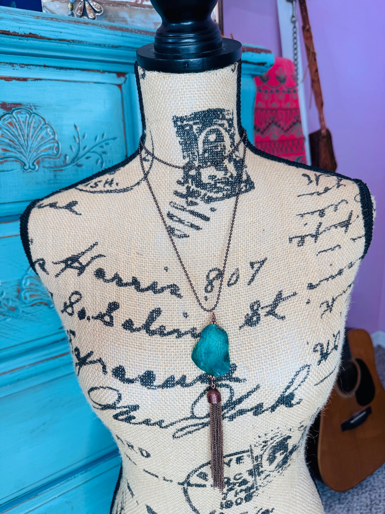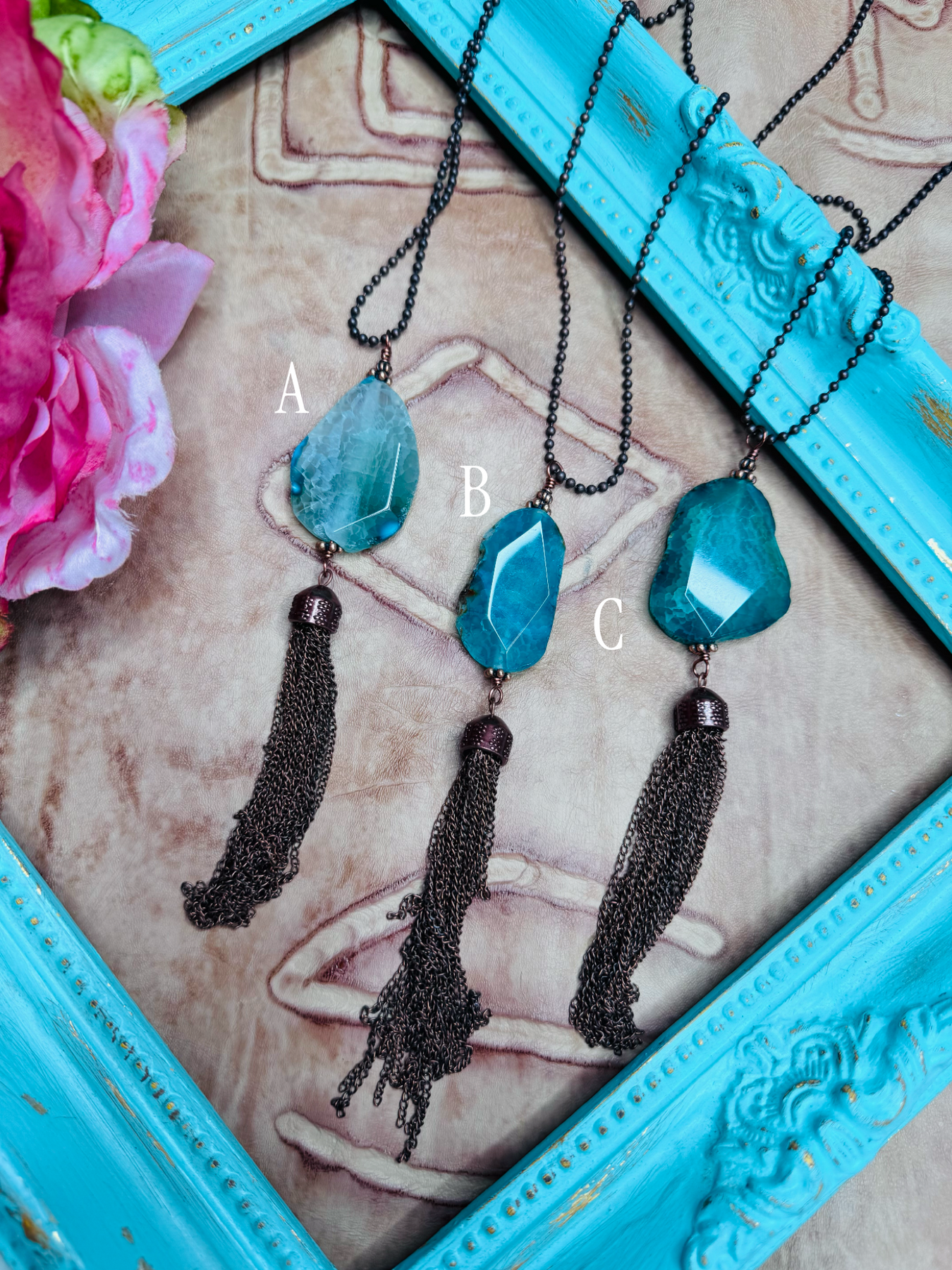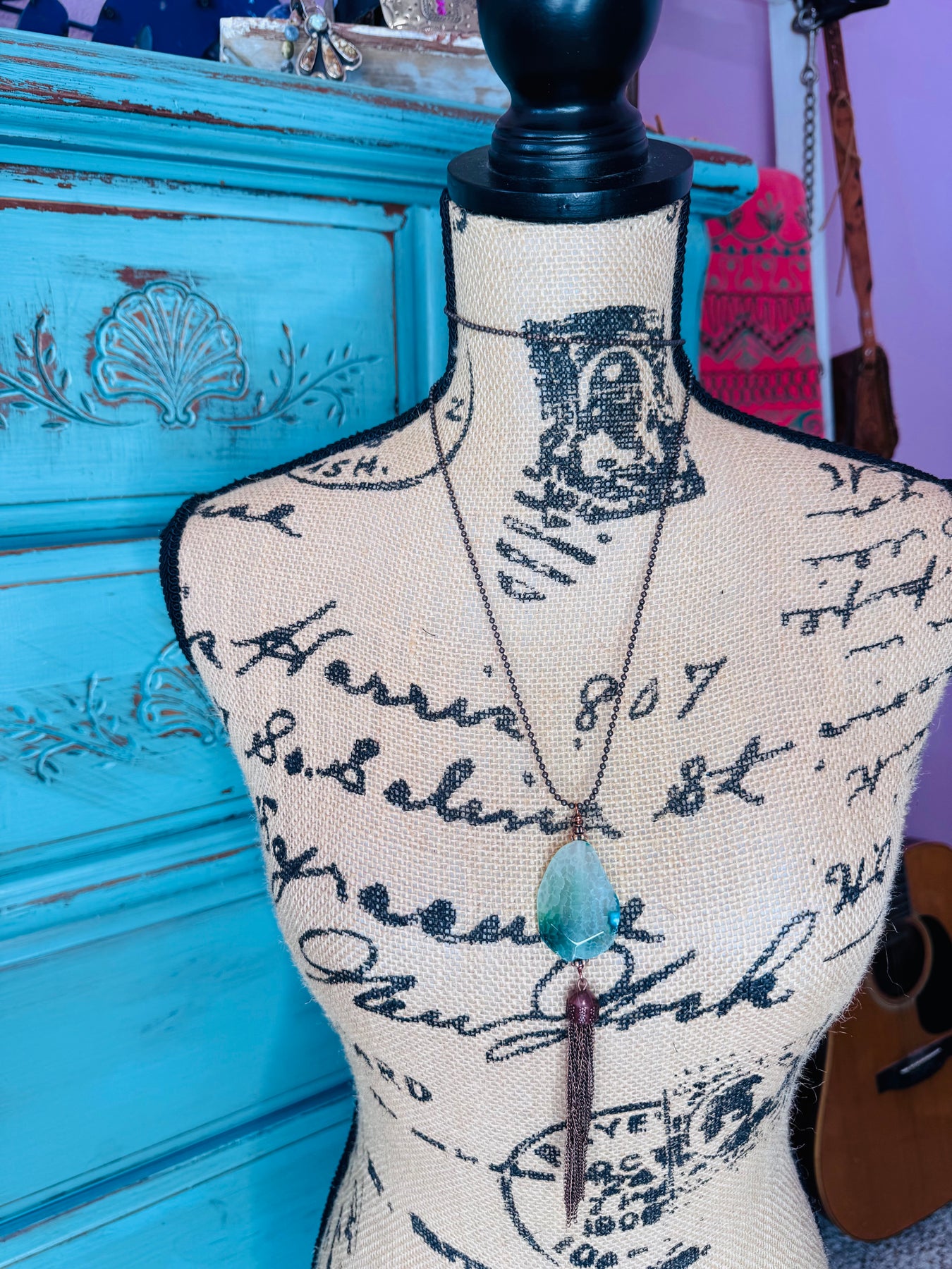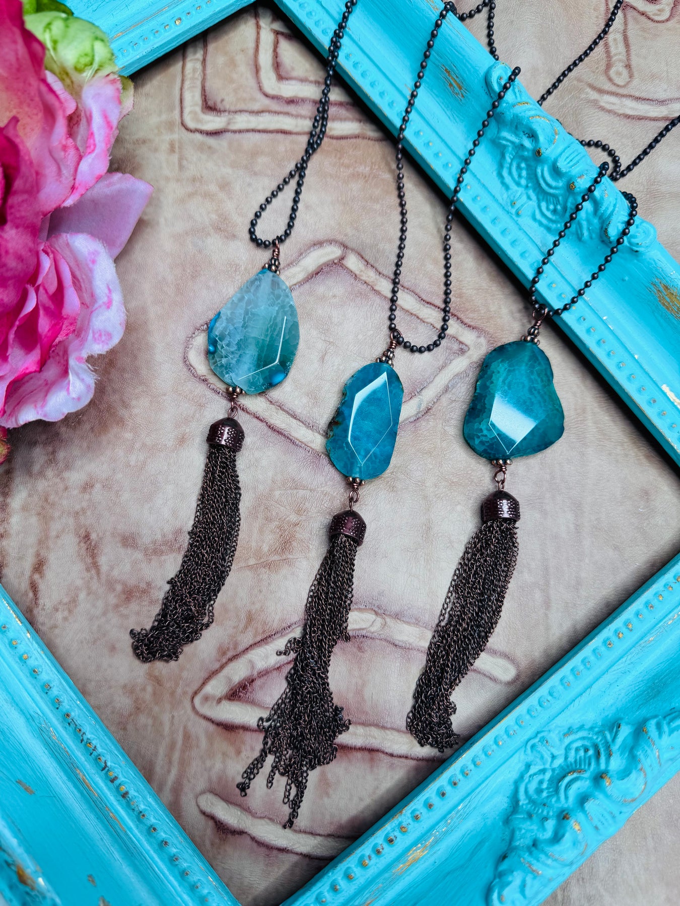 Agate Pendant on a Ball chain with Tassel.