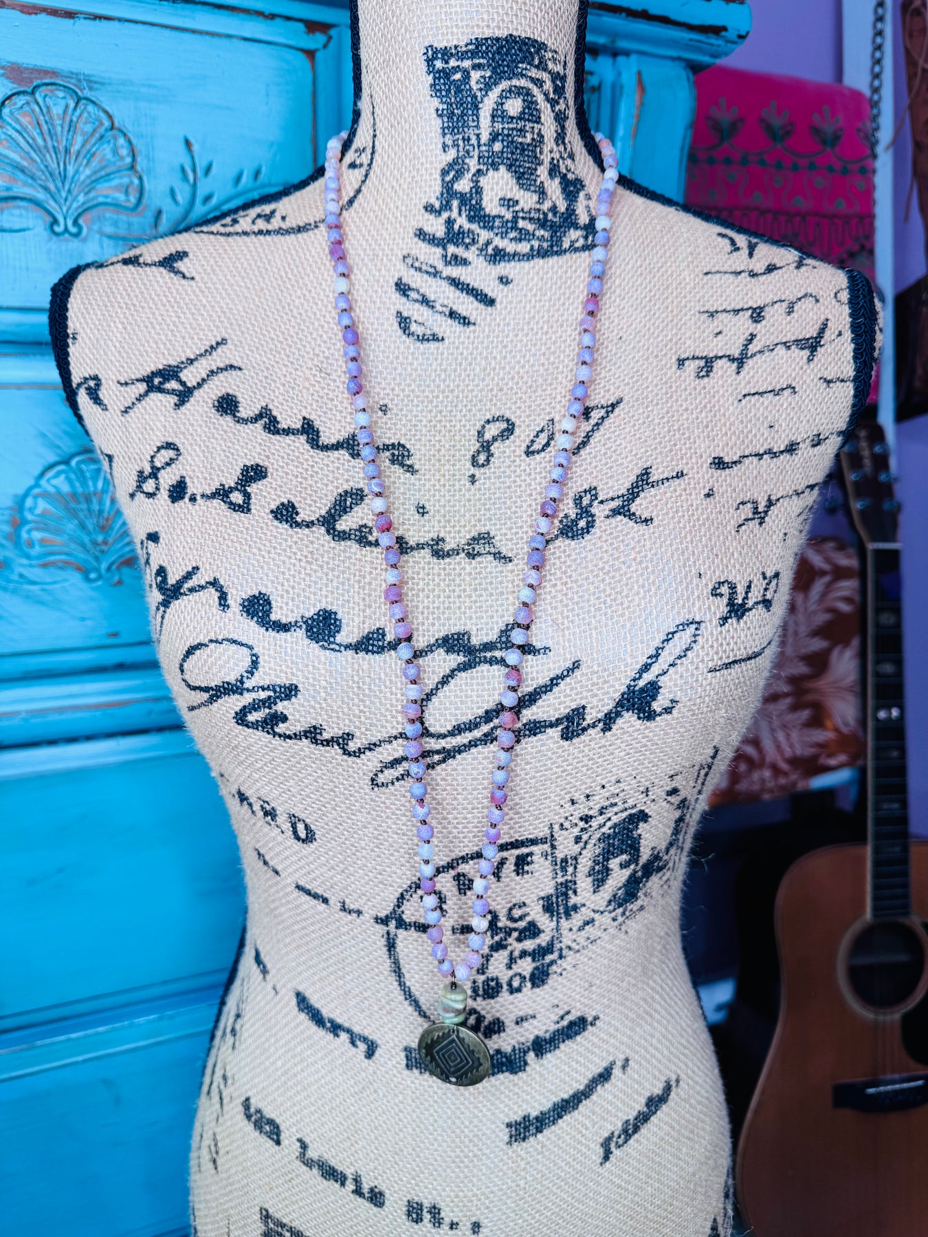 Pink Beaded Necklace with Unique Charm