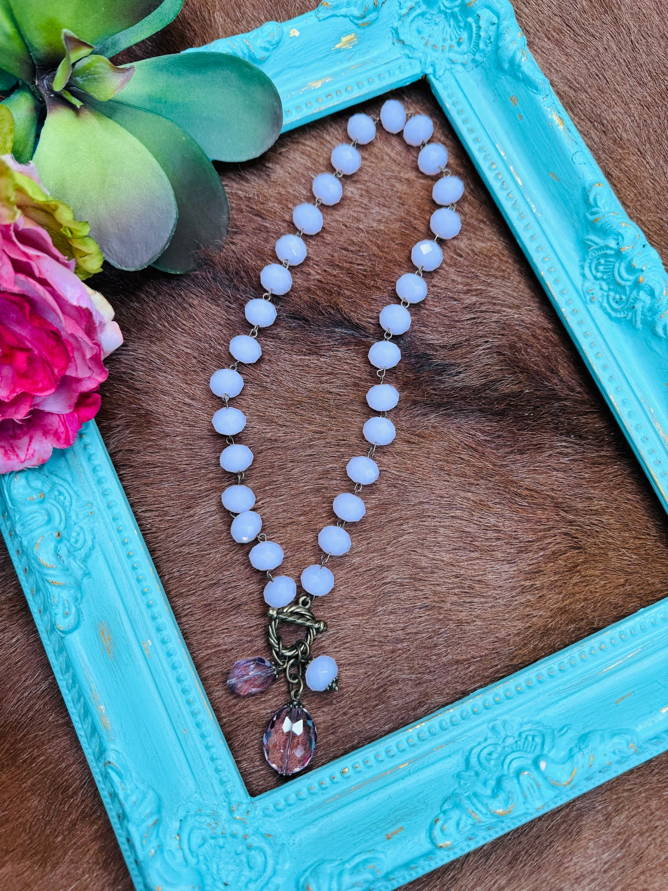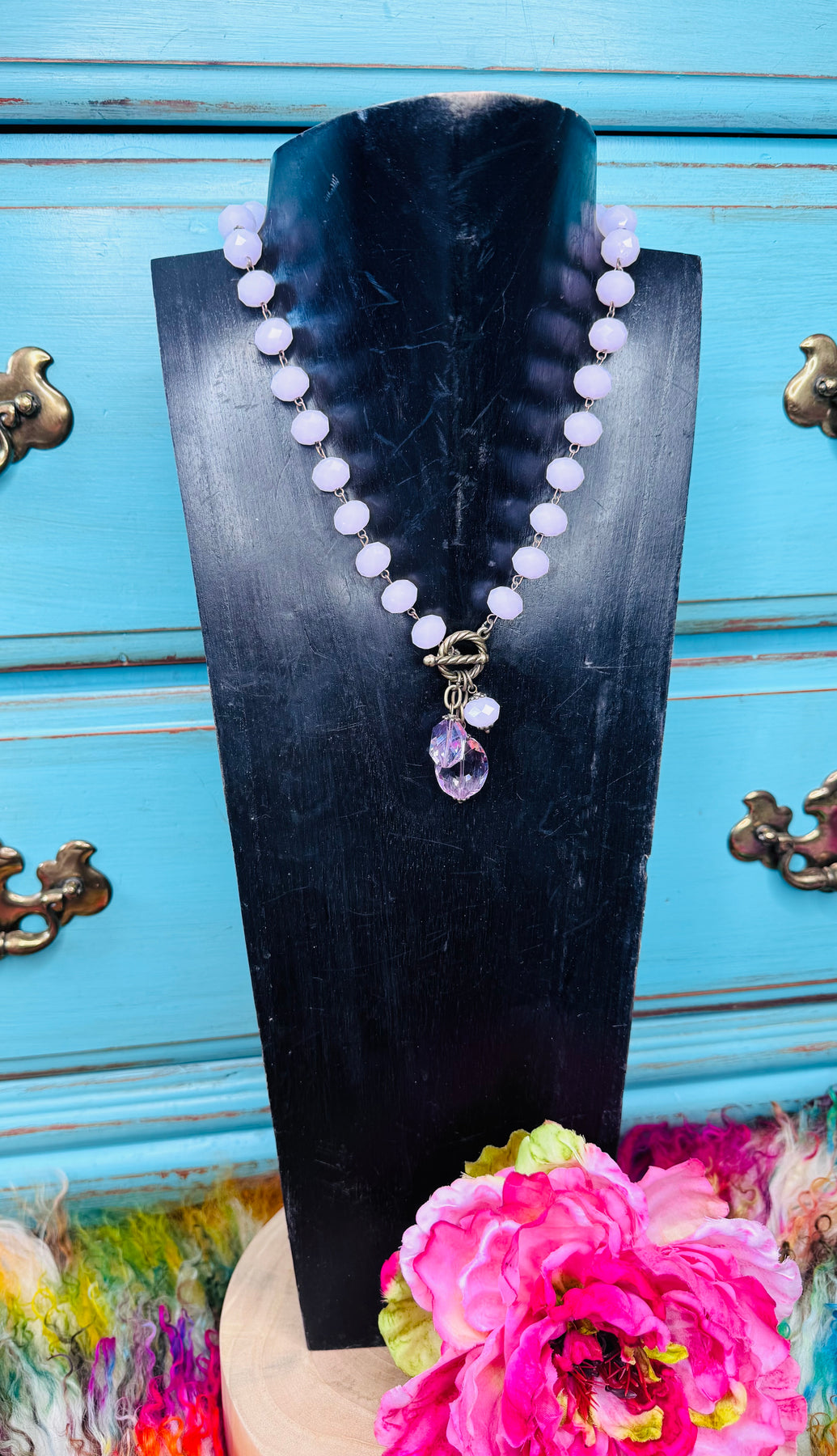Light Pink Crystal Necklace with Front Toggle Closure and Unique Charms