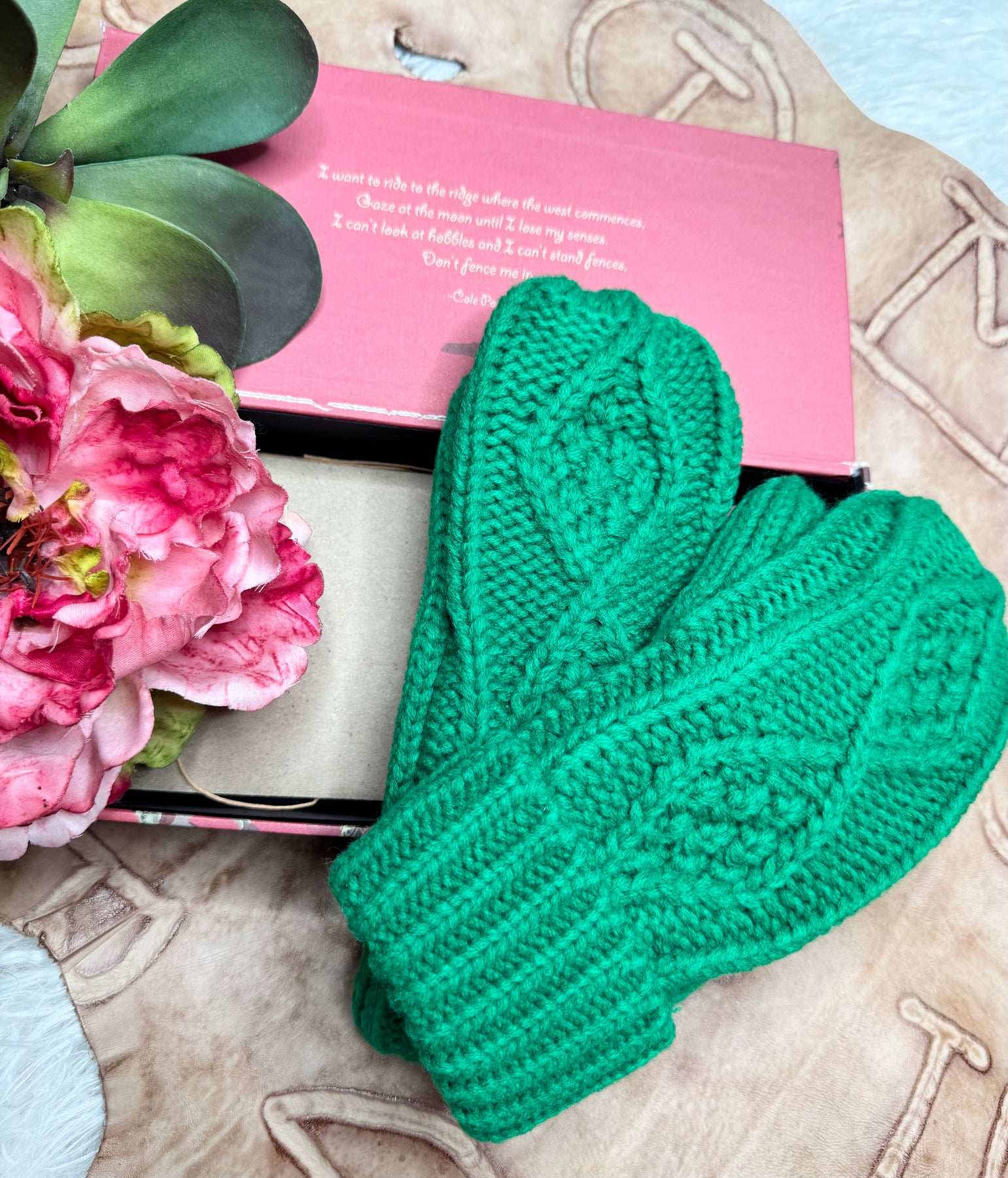 Bright Green Knit Mittens