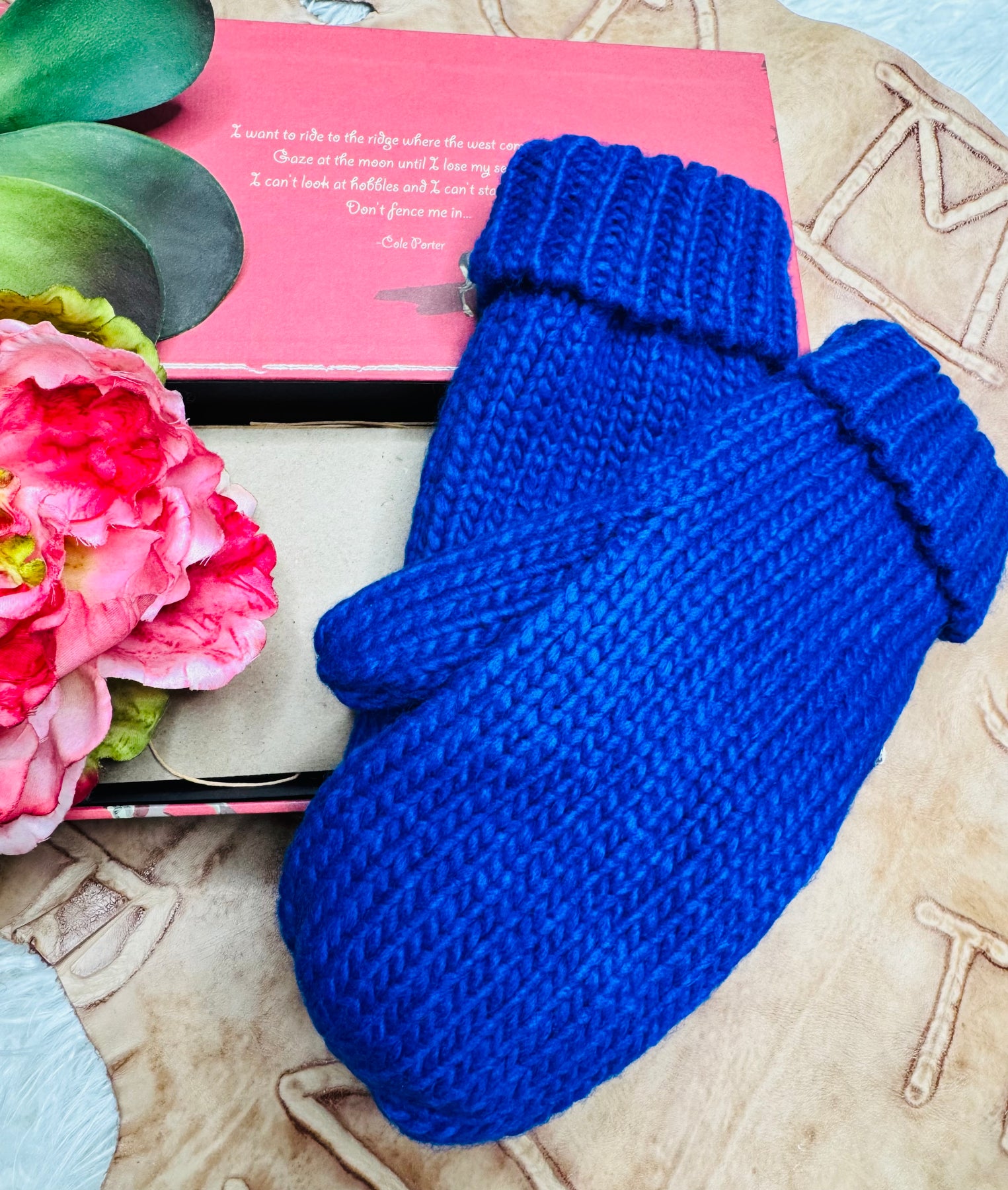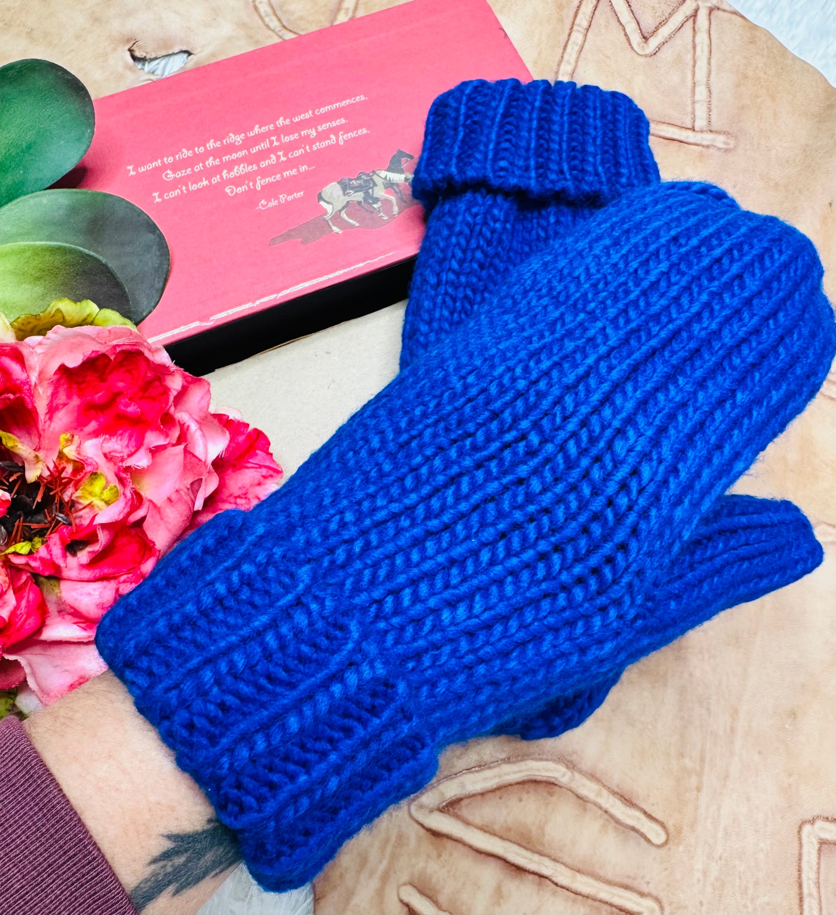 Royal Blue Cuffed Knit Mittens