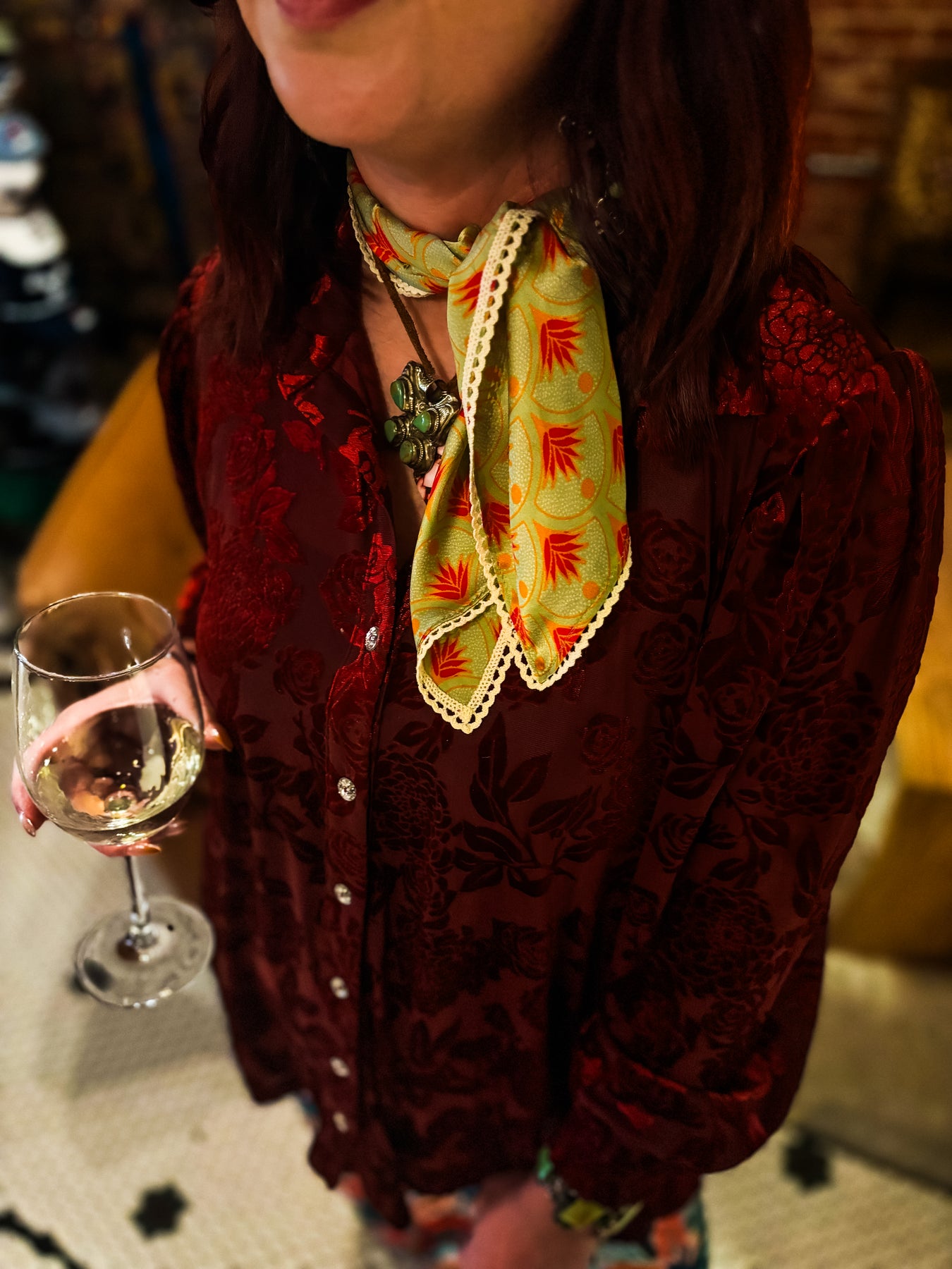 Beautiful hand designed Allie Falcon scarfs with crochet trim