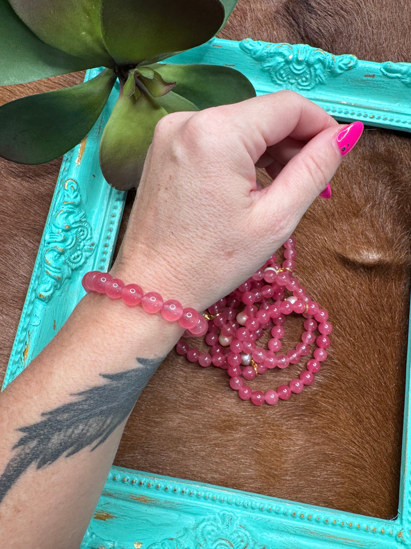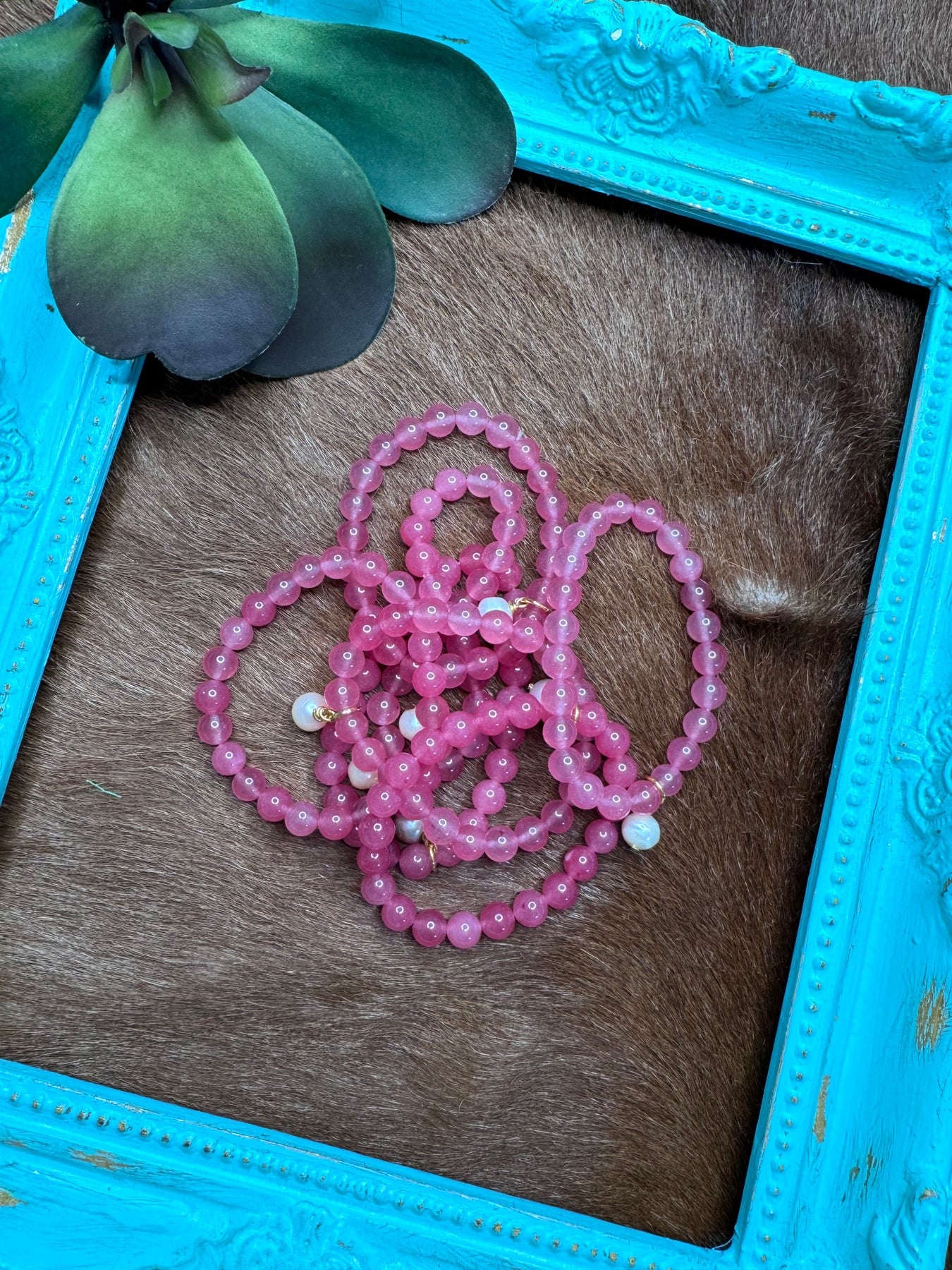 Lady the Brand Designed & Created Light Pink Beaded Stretch Bracelet with Pearl Charm