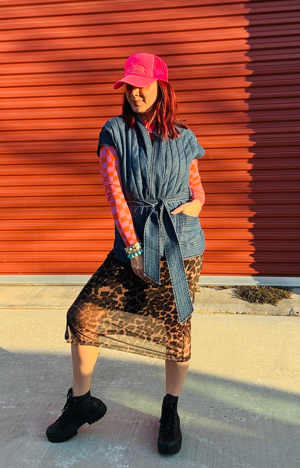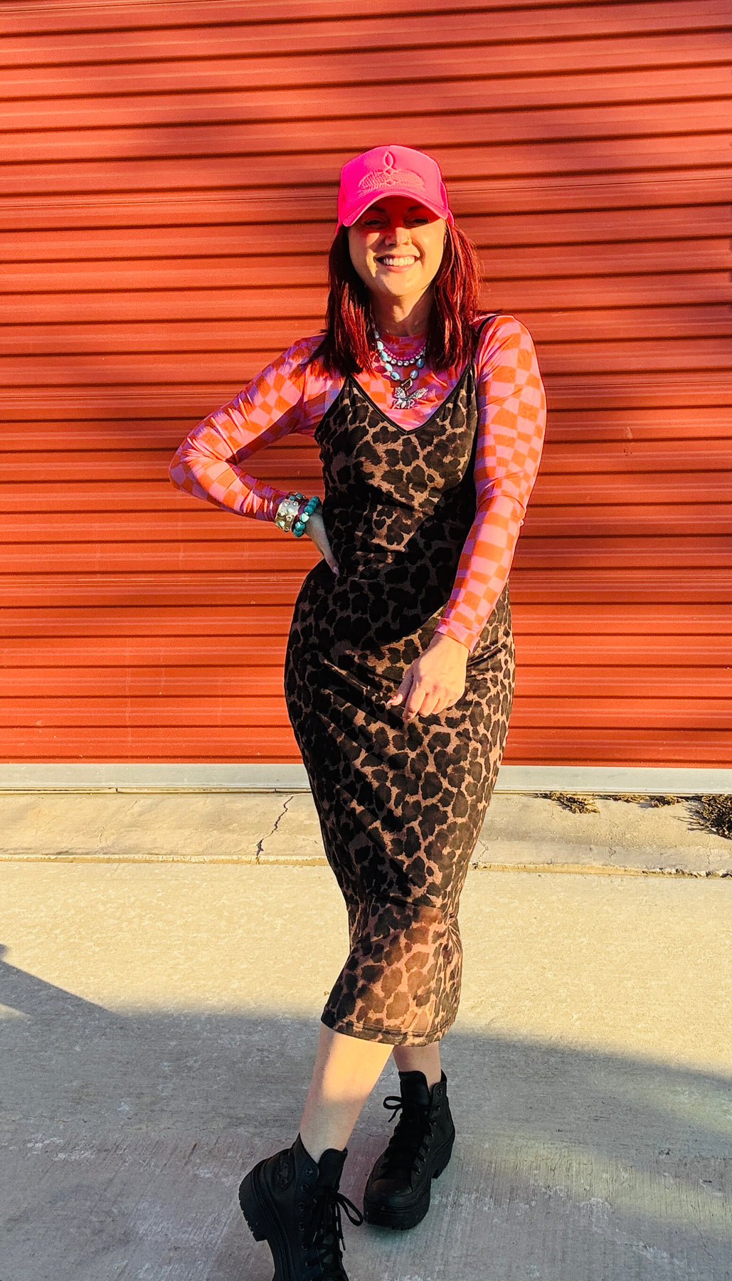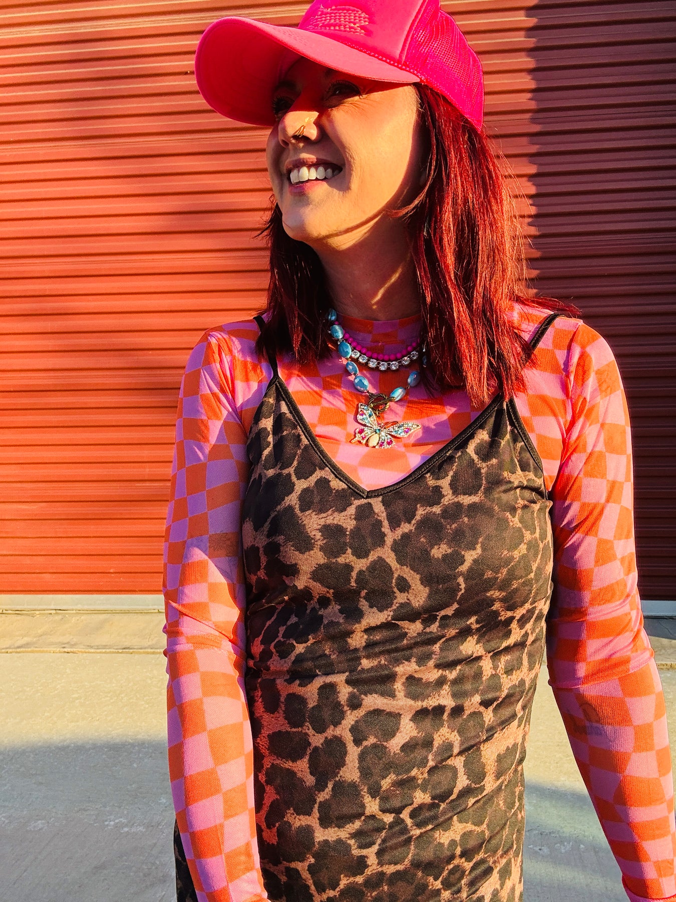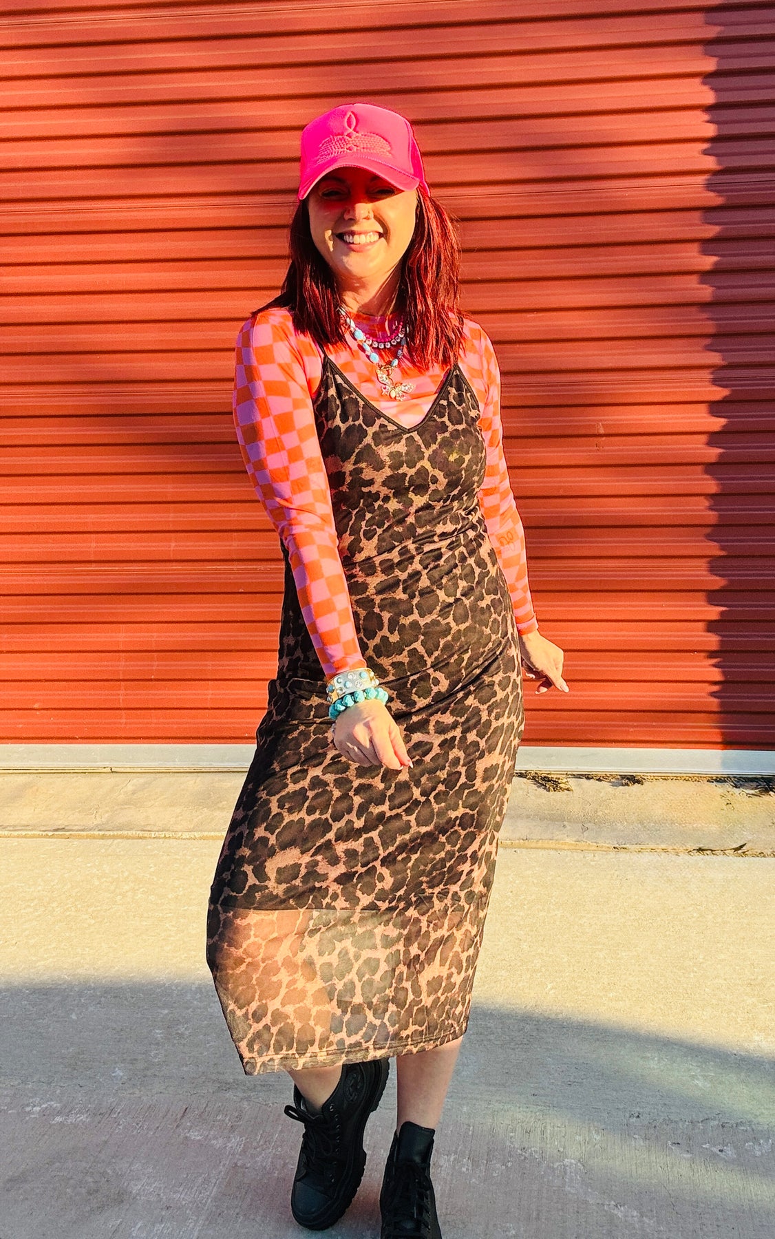 Leopard Mesh Dress with Adjustable Straps. Mesh Top with Lining
